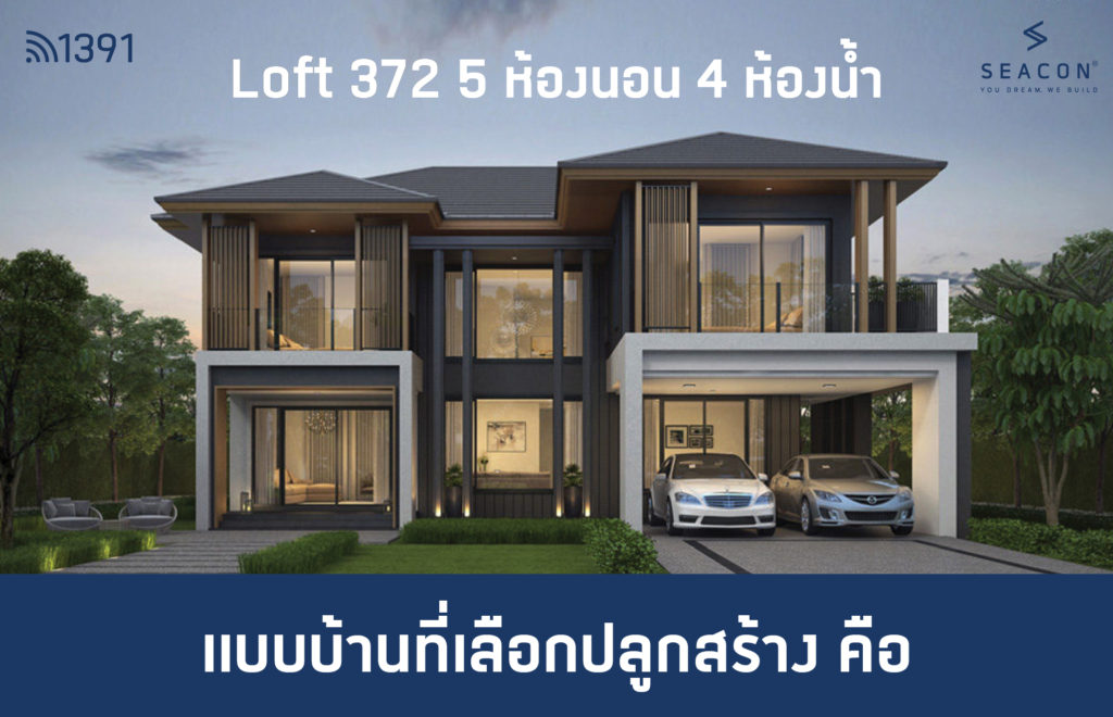 แบบบ้าน : Loft 372 พื้นที่ : 372 ตร.ม. ขนาดที่ดิน : 102 ตร.วา 5 ห้องนอน 4 ห้องน้ำ 2 จอดรถ.