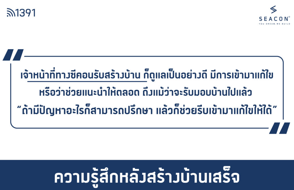 • แม้การสร้างบ้านจะท้าทาย แต่ซีคอนดูแลและให้คำแนะนำดี