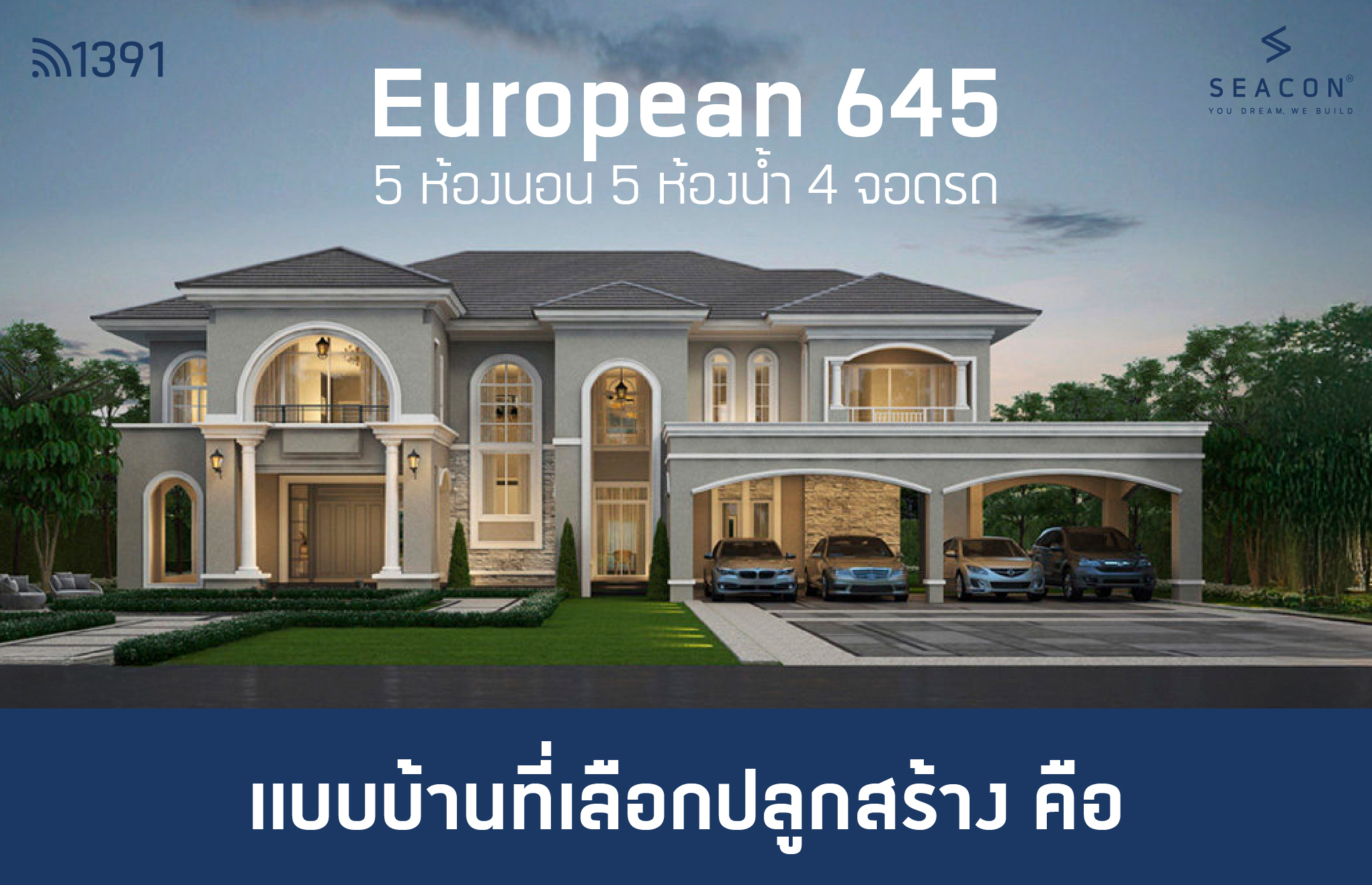 แบบบ้าน : European 645 พื้นที่ : 645 ตร.ม. ขนาดที่ดิน : 152 ตร.วา 5 ห้องนอน 5 ห้องน้ำ 4 จอดรถ