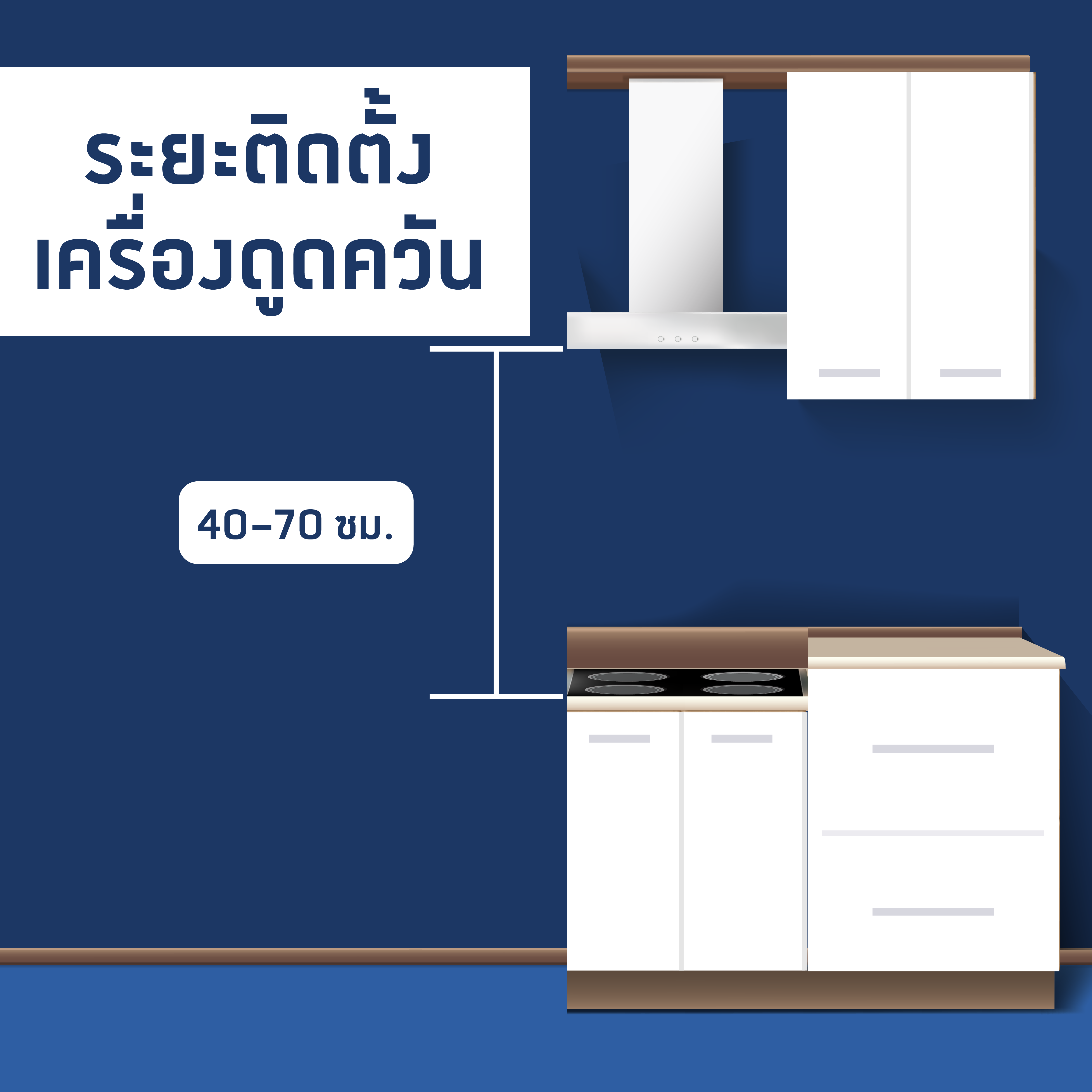 เครื่องดูดควัน ควรสูงจากท็อปเคาน์เตอร์ เตาแก๊สประมาณ 40 – 70 ซม.