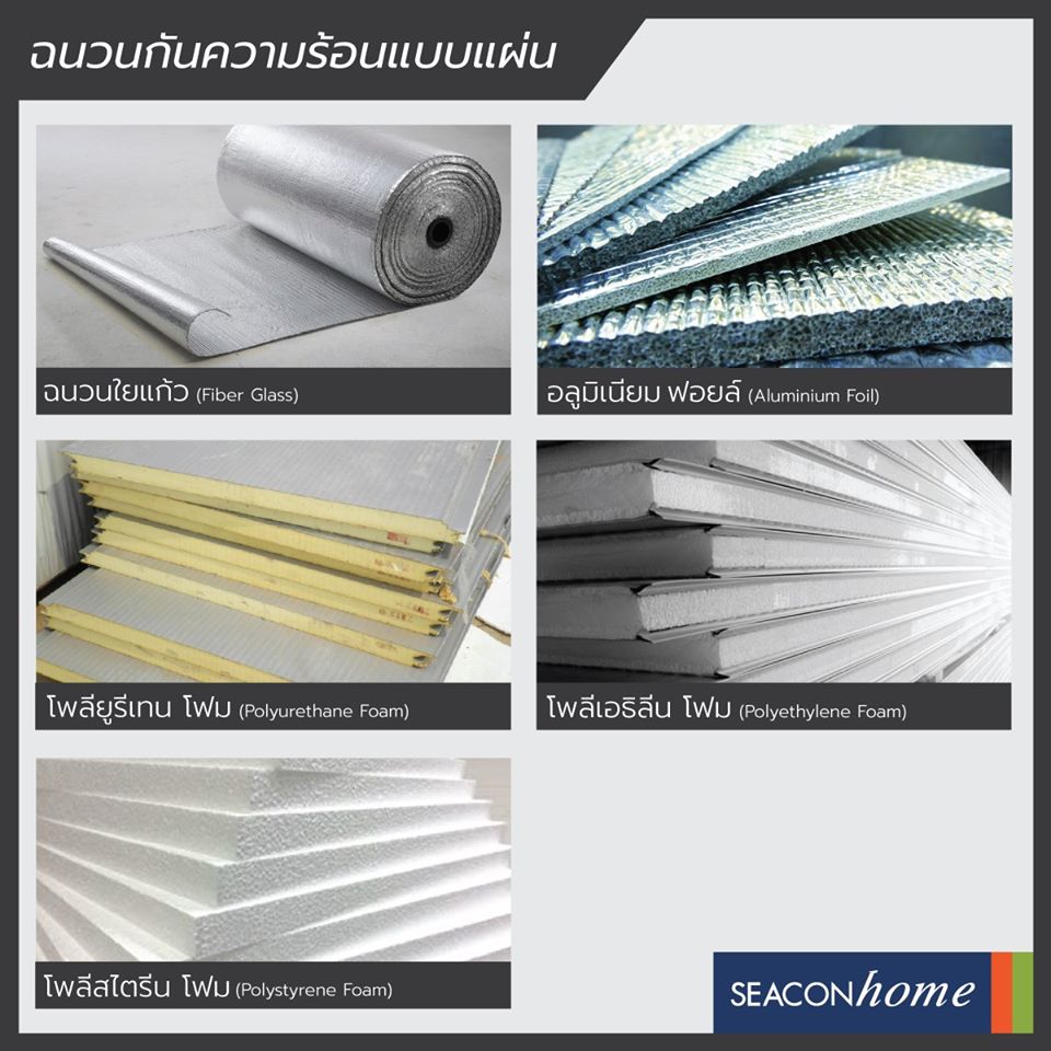 ฉนวนกันร้อนที่มีให้เลือกหลายชนิด ซึ่งฉนวนกันร้อนจะมี 2 หน้าที่ด้วยกันคือดูดซับความร้อน และสะท้อนความความร้อน