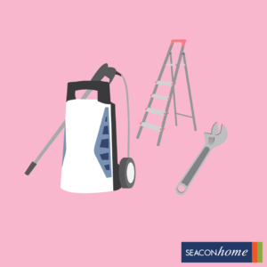 1. เตรียมอุปกรณ์ โดยอุปกรณ์ทั้งหมดที่ใช้มี ประแจ เทปพันท่อประปา บันได เครื่องฉีดน้ำแรงดันสูง หรือถ้าไม่มีก็ใช้สายยางฉีดน้ำก็ได้