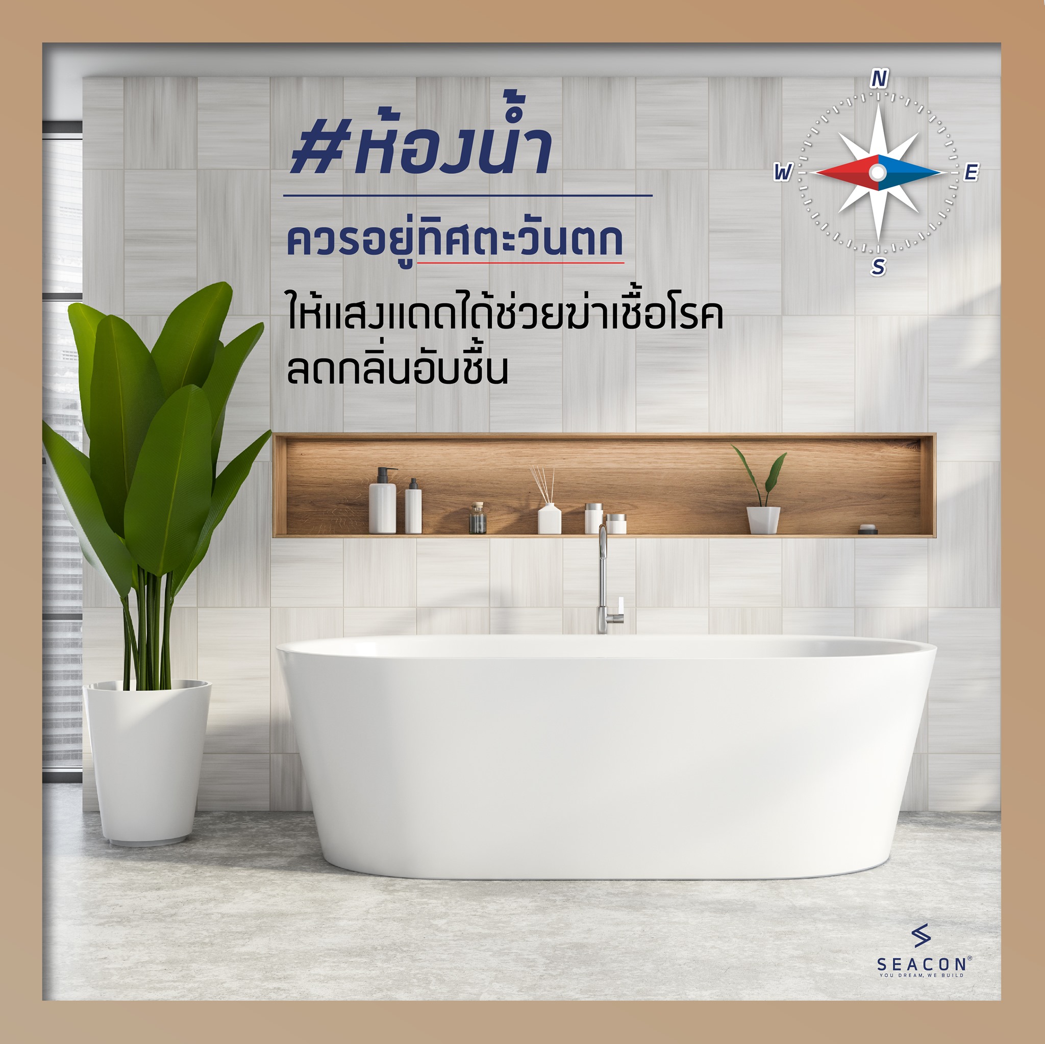 🛁เป็นห้องที่มีความอับชื้นมาก มีกลิ่นไม่พึงประสงค์ เป็นที่สะสมของเชื้อโรคได้ง่าย ควรอยู่ในทิศที่โดนแดด คือทิศตะวันตก หรือตะวันตกเฉียงใต้ เพื่อการระบายอากาศที่ดี ลดกลิ่นอับชื้น และให้แสงแดดได้ช่วยฆ่าเชื้อโรค หากห้องน้ำเกิดอยู่ในทิศที่ไม่โดนแดด ควรแก้ไขโดยการเปิดช่องระบายอากาศให้ใหญ่ขึ้น หรือติดพัดลมดูดอากาศช่วยอีกทางหนึ่งครับ