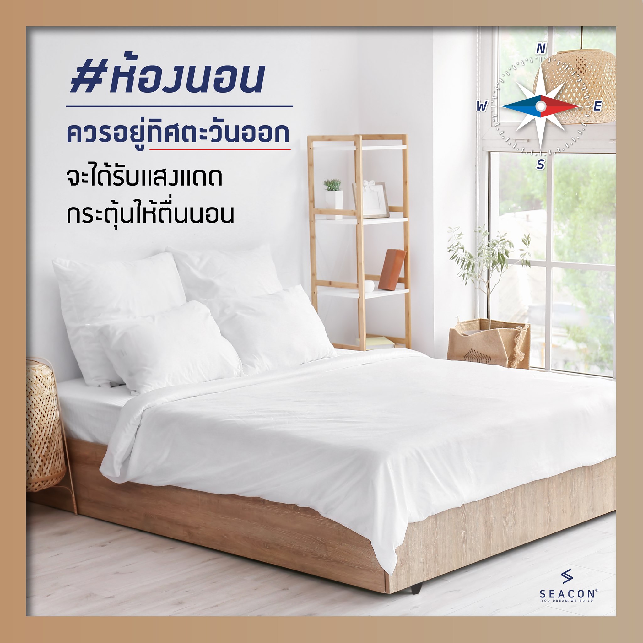 🛏ควรอยู่ทิศตะวันออก เพราะแสงจากพระอาทิตย์ขึ้นในตอนเช้าจะช่วยกระตุ้นให้ตื่นนอน แต่ถ้าหากใครชอบนอนตื่นสายเพราะทำงานหามรุ่งหามค่ำห้องนอนควรอยู่ทิศเหนือ เพราะเป็นทิศที่จะไม่โดนแดดตลอดทั้งวัน และยังมีลมพัดผ่านในช่วงฤดูหนาว ทำให้เย็นสบายอีกด้วย หากห้องนอนอยู่ทางทิศใต้หรือทิศตะวันตกเฉียงใต้ จะได้รับแสงแดดแรงในช่วงบ่ายและเกิดการสะสมความร้อน ทำให้ห้องร้อนในช่วงค่ำ อาจแก้ไขโดยการทำระเบียงหรือปลูกต้นไม้ใหญ่ช่วยบังแดด