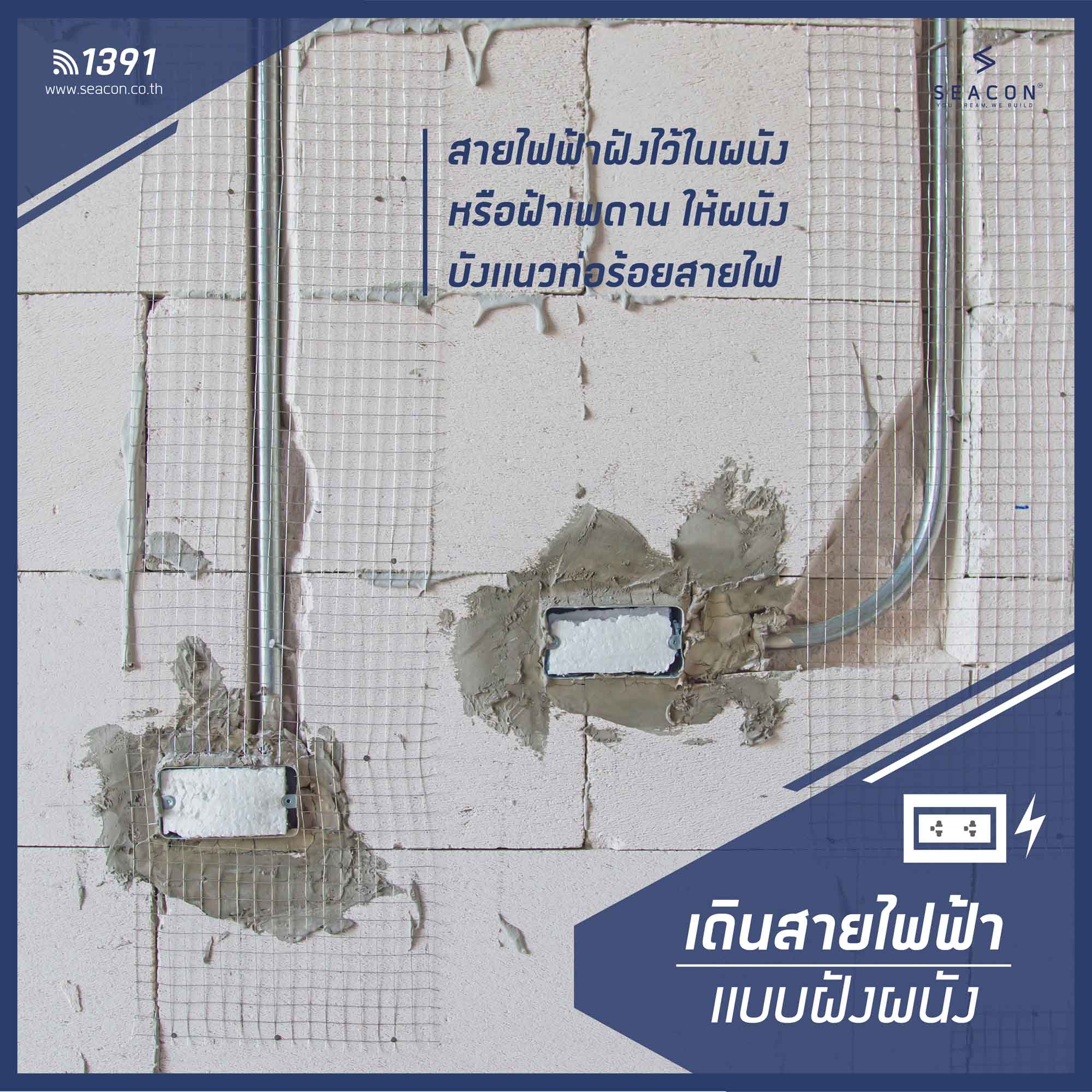 คือการเดินสายไฟในท่อร้อยสายไฟ แล้วฝังไว้ในผนังหรือฝ้าเพดานให้ผนังบังเเนวท่อร้อยสายไฟเอาไว้ ทั้งนี้การติดตั้งสามารถฝังได้ทั้งผนังเบา และผนังอิฐ ซึ่งการฝังในผนังเบาจะทำได้ค่อนข้างง่ายกว่า