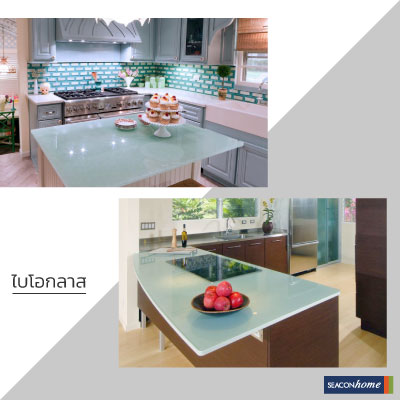 ท็อปเคาน์เตอร์ที่ผลิตจากกระจกซึ่งสามารถรีไซเคิลได้ 100% มีความทันสมัย สวยงาม และมี