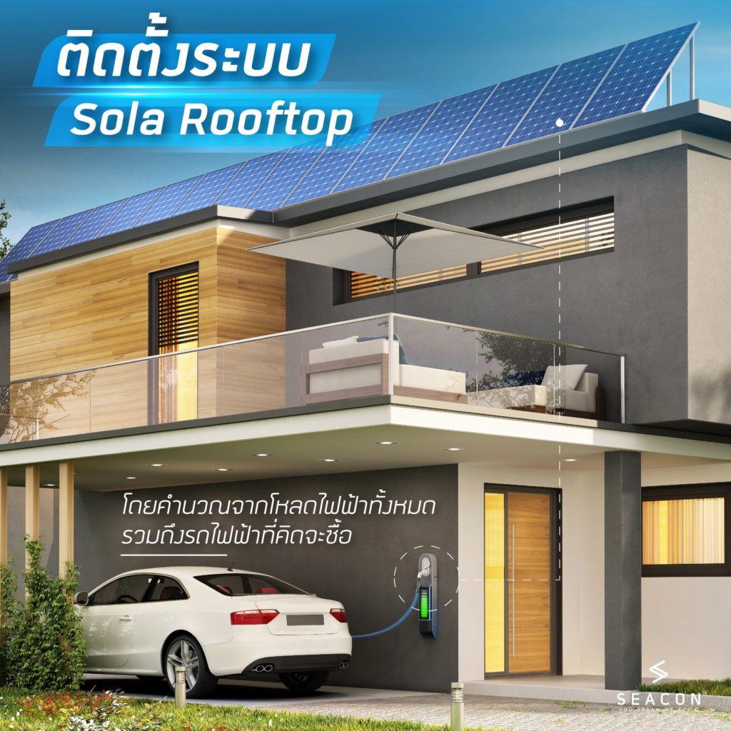 1. ติดตั้งระบบ Sola Rooftop ที่มีขนาดกำลังการผลิตไฟฟ้าเพียงพอต่อการใช้งานโดยคำนวณจากโหลดไฟฟ้าทั้งหมด รวมถึงรถไฟฟ้าที่คิดจะซื้อ การใช้พลังงานแสงอาทิตย์ในการชาร์จไฟหรือใช้งานในบ้าน เป็นการลงทุนที่คุ้มค่าในระยะยาว เมื่อรวมค่าไฟฟ้าที่ลดลง 30 – 50% และค่าเชื้อเพลิงรถยนต์ที่ลดลง 50 – 70% แล้วจุดคุ้มทุนจะเร็วมาก