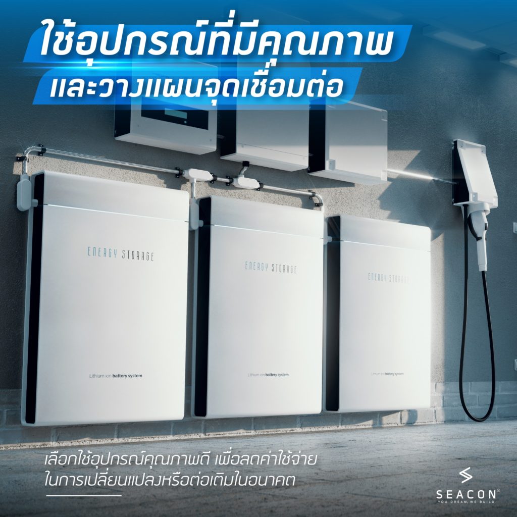 4. ใช้อุปกรณ์ที่มีคุณภาพ และควรวางแผนจุดเชื่อมต่อในอนาคตถ้าต้องมีการเพิ่มเติม จะได้ไม่ต้องมีการรื้อ ทุบ ต่อเติม เผื่อกรณีจะมีรถพลังงานไฟฟ้าเพิ่มขึ้นภายในบ้าน การออกแบบเผื่อต่อเติมตั้งแต่เริ่มต้น ลงทุนน้อยกว่าการต่อเติมภายหลัง และตัดปัญหาน่าปวดหัวที่จะตามมาในระยะยาว