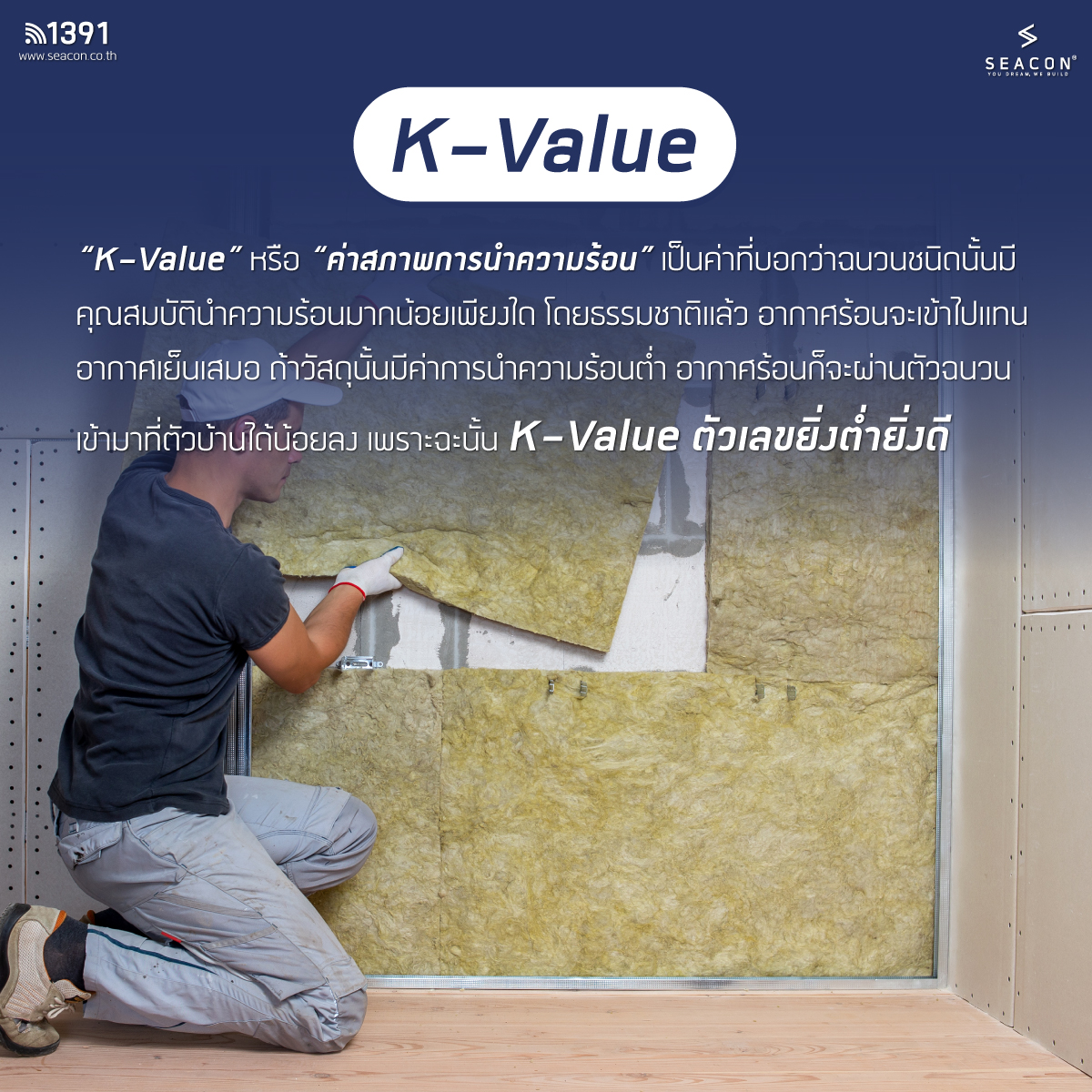 เป็นค่าที่บอกว่า ฉนวนชนิดนั้นมีคุณสมบัตินำความร้อนมากน้อยเพียงใด โดยตามธรรมชาติแล้ว อากาศร้อนจะเข้าไปแทนที่อากาศเย็นกว่าเสมอ ถ้าวัสดุนั้นมีค่าการนำความร้อนต่ำ อากาศร้อนก็จะผ่านตัวฉนวนเข้ามาที่ตัวบ้านได้น้อยลง เพราะฉะนั้น “K-Value ตัวเลขยิ่งต่ำก็ยิ่งดี” และจะมีความคงที่ตลอดอายุการใช้งาน (ค่า K-Value มีหน่วยเป็น วัตต์ต่อเมตร-องศาเคลวิน (W/m.k.))
