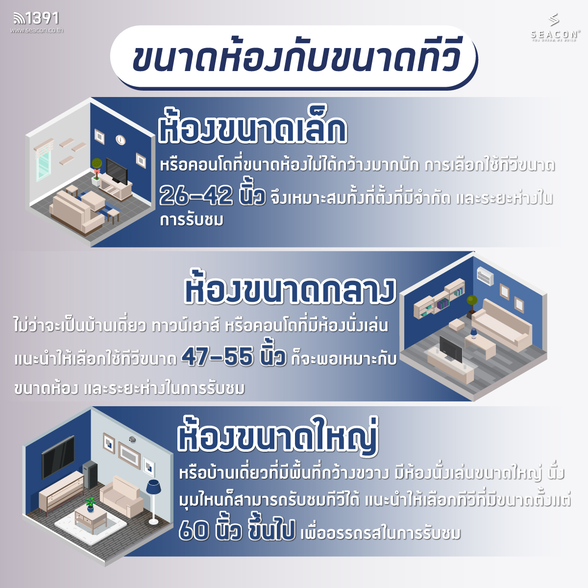 ขนาดของห้องต้องมีความสัมพันธ์กับขนาดทีวี เพราะหากขนาดไม่สัมพันธ์กัน จะทำให้อรรถรสในการรับชมไม่ดี และเกิดความลำบากในขณะรับชม