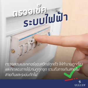 เริ่มจากตรวจสอบเบรกเกอร์ว่าแต่ละสวิตช์ทำงานถูกต้องหรือไม่ จากนั้นทดลองการใช้งานดูทุกจุด ทดสอบความถูกต้องของการเดินสายไฟ สายดิน และระบบตัดไฟ