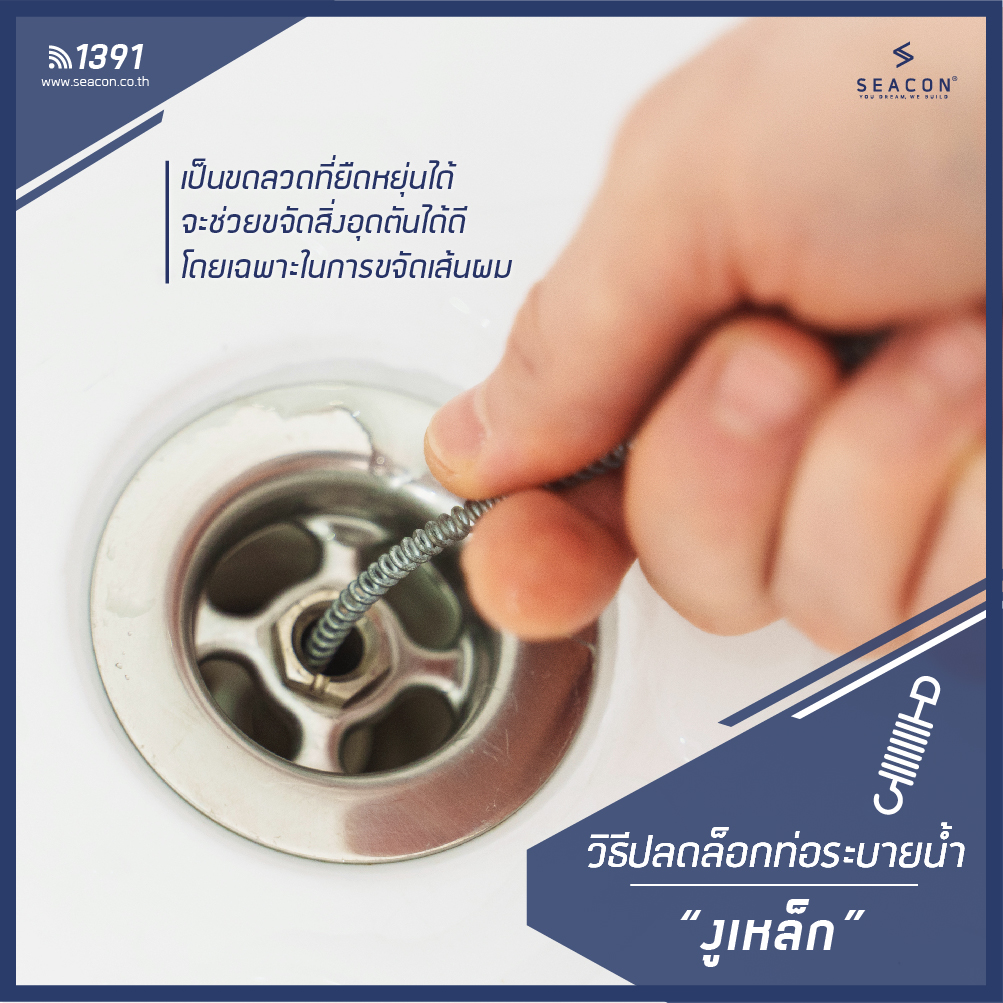 4.“งูเหล็ก” เป็นเครื่องมือช่วยทะลวงเพื่อระบายท่อ เป็นขดลวดที่ยืดหยุ่นได้ หากสิ่งที่อุดตันอยู่ลึกเกินกว่าจะคลายออกด้วยไม้แขวนเสื้อ การใช้ “งูเหล็ก” จะช่วยขจัดสิ่งอุดตันได้ดี และมีประสิทธิภาพโดยเฉพาะอย่างยิ่งในการขจัดเส้นผม