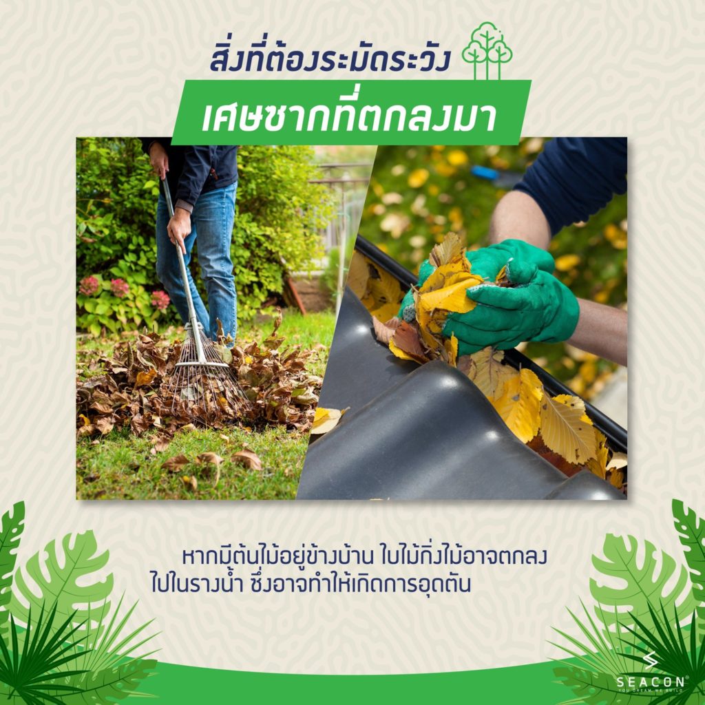 : หากมีต้นไม้อยู่ข้างบ้าน ใบไม้กิ่งไม้อาจตกลงไปในรางน้ำซึ่งอาจทำให้เกิดการอุดตัน