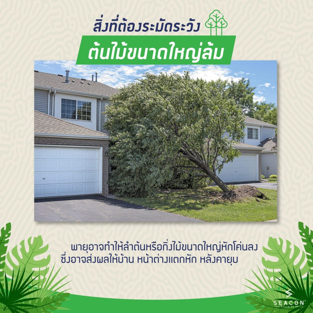 : พายุอาจทำให้กิ่งไม้ขนาดใหญ่ล้มลงซึ่งอาจส่งผลให้หน้าต่างแตกหัก หลังคายุบ หรือผู้อยู่อาศัยในบ้านได้รับบาดเจ็บ