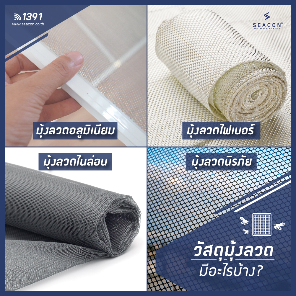 2. มุ้งลวดไฟเบอร์ เป็นวัสดุสังเคราะห์พิเศษ มองผ่านทะลุได้ชัดเจน คงทนต่อการกัดกร่อนสูง ทนร้อนไม่ติดไฟ มีความเหนียวยืดหยุ่นสูง แต่หากใช้ไปนาน ๆ อาจคลายตัวหรือหย่อน