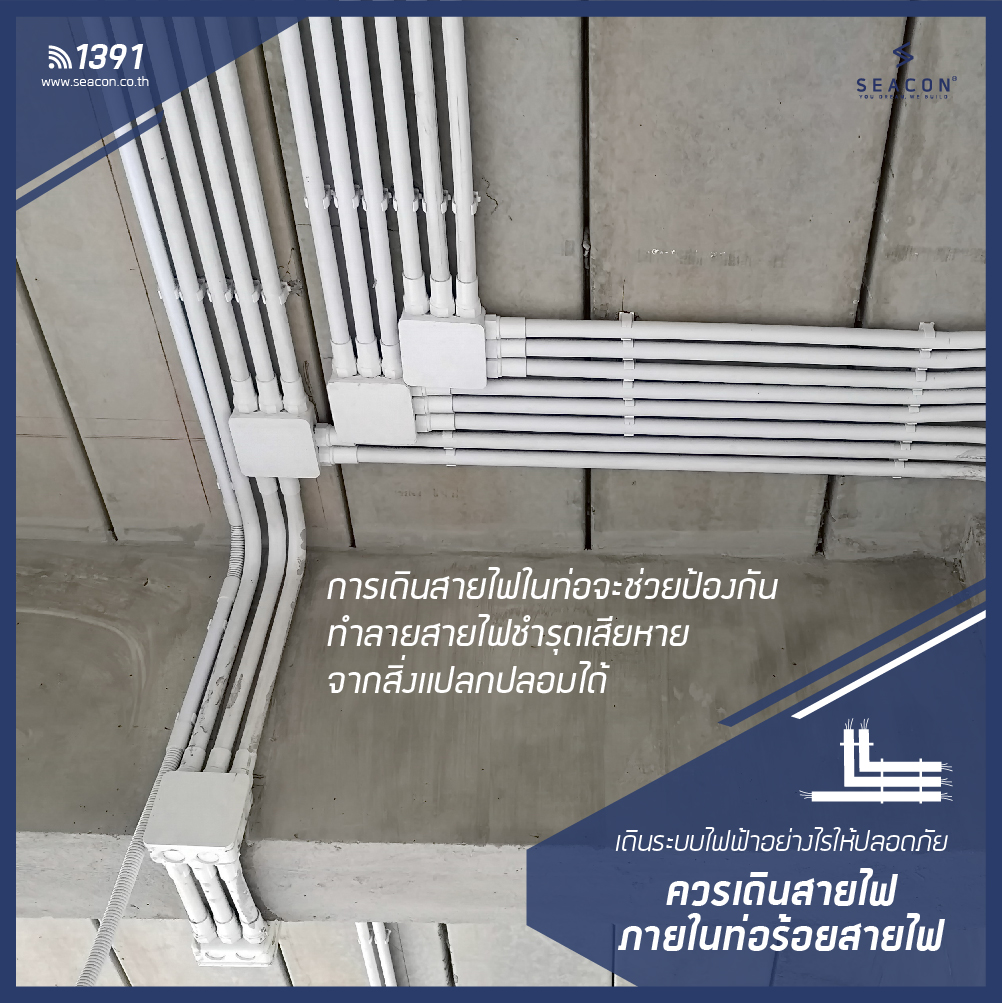 3. ควรเดินสายไฟภายในท่อร้อยสายไฟ เพราะการใช้งานตามสภาพแวดล้อมอาจจะโดนสิ่งแปลกปลอม เช่น ฝุ่น น้ำ แมลง ทำลายสายไฟชำรุดเสียหาย การเดินในท่อจะช่วยป้องกันได้