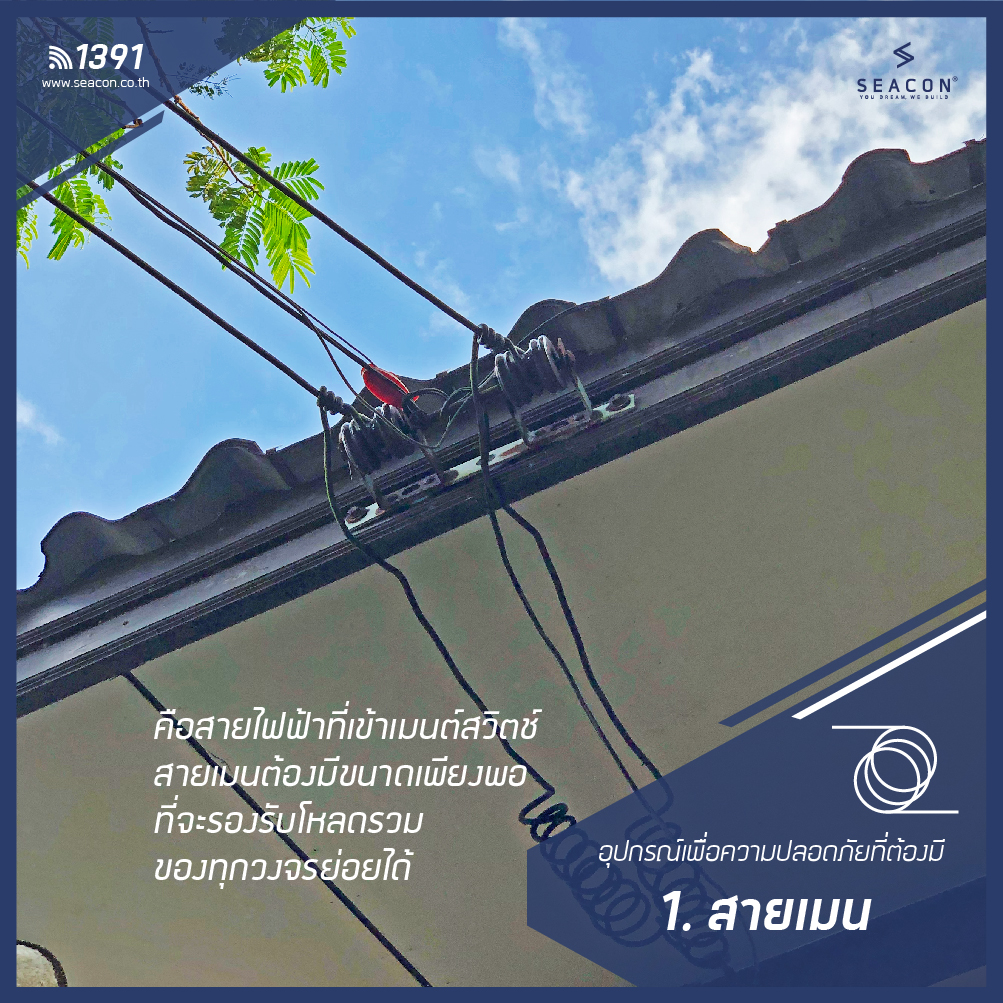 1. สายเมน คือสายไฟฟ้าที่เดินจากมิเตอร์ไฟฟ้าเข้ามาที่แผงเมนสวิตช์ของบ้าน สายเมนต้องมีขนาดเพียงพอที่จะรองรับโหลดรวมของทุกวงจรย่อยได้