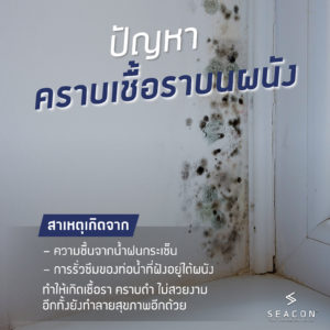 หลักใหญ่ใจความสำคัญของการเกิดเชื้อราบนผนัง คือ ความชื้น ไม่ว่าจะมาจากน้ำฝนกระเซ็น หรือการรั่วซึมของท่อน้ำที่ฝังอยู่ใต้ผนัง สะสมกันไปนาน ๆ จนทำให้เกิดเชื้อรา คราบดำ ไม่สวยงาม อีกทั้งยังทำลายสุขภาพอีกด้วย