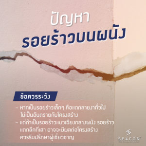 แต่ถ้าเป็นรอยร้าวแนวเฉียงกลางผนัง แนวดิ่งกลางผนัง รอยร้าวแตกลึกที่เสา หรือร้าวกลางคานแล้วล่ะก็ แบบนี้ปล่อยไว้ไม่ได้นะครับ เพราะมีผลต่อโครงสร้างอาจเกิดอันตรายได้ ควรรีบปรึกษาช่างผู้เชี่ยวชาญแล้วรีบแก้ไขโดยด่วนเลยนะครับ