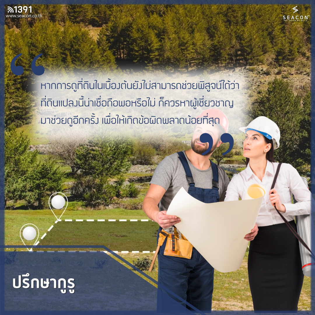 หากการดูที่ดินในเบื้องต้นยังไม่สามารถช่วยพิสูจน์ได้ว่าที่ดินแปลงนี้น่าเชื่อถือพอหรือไม่ ก็ควรหาผู้เชี่ยวชาญมาช่วยดูอีกครั้ง เพื่อให้เกิดข้อผิดพลาดน้อยที่สุด