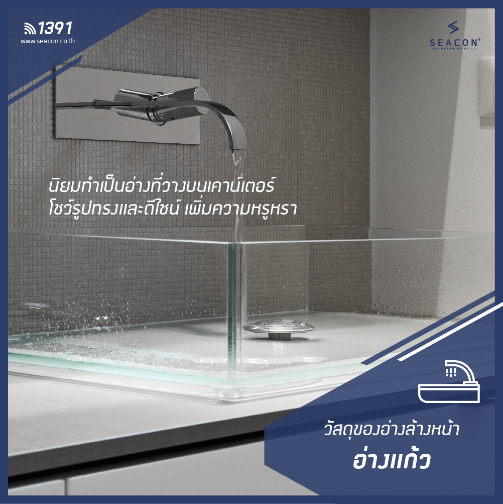 – อ่างแก้ว นิยมทำเป็นอ่างที่วางบนเคาน์เตอร์ โชว์รูปทรงและดีไซน์ เพิ่มความหรูหรา