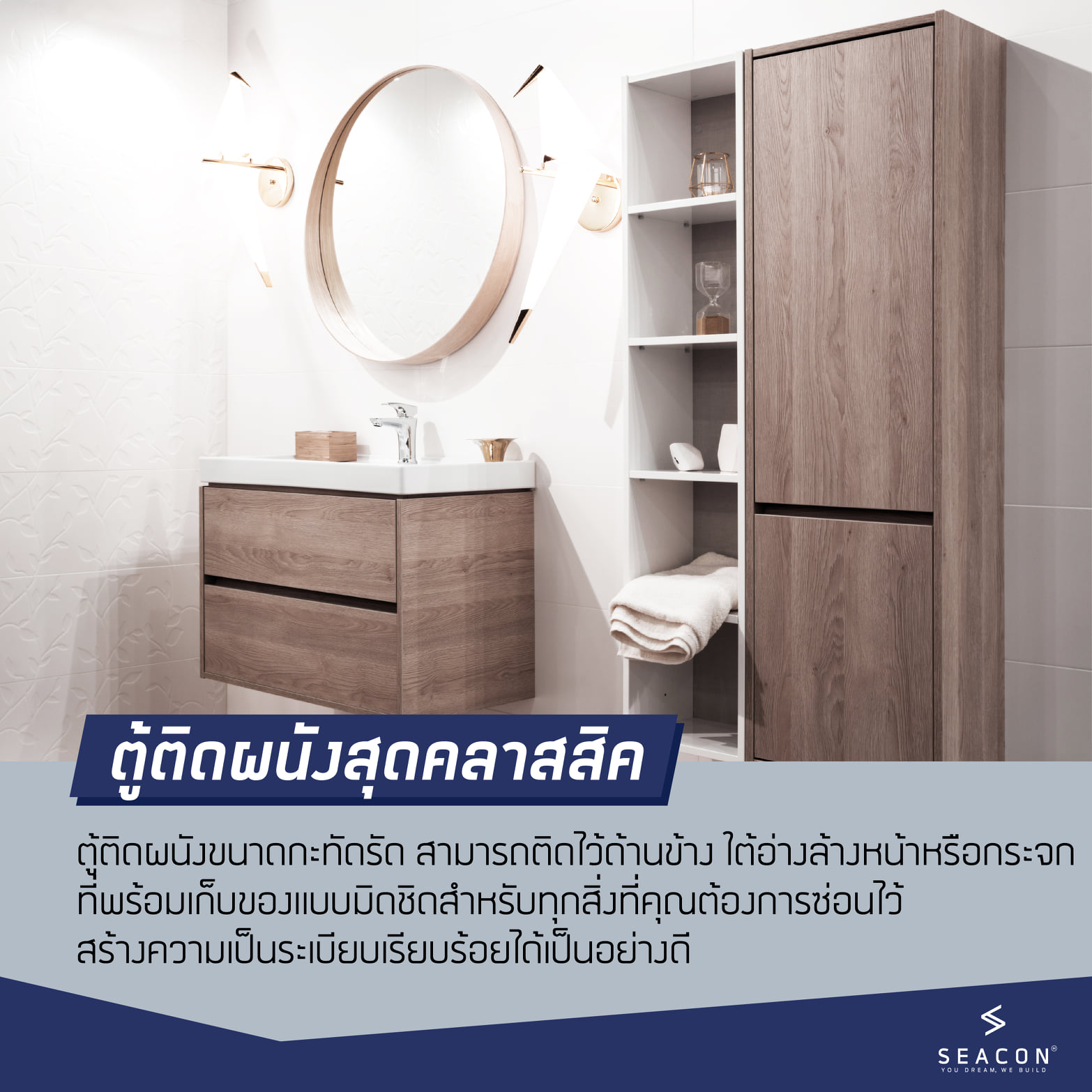 ตู้ติดผนังขนาดกะทัดรัด สามารถติดไว้ด้านข้าง ใต้อ่างล้างหน้าหรือกระจก ที่พร้อมเก็บของแบบมิดชิดสำหรับทุกสิ่งที่คุณต้องการซ่อนไว้ สร้างความเป็นระเบียบเรียบร้อยได้เป็นอย่างดี