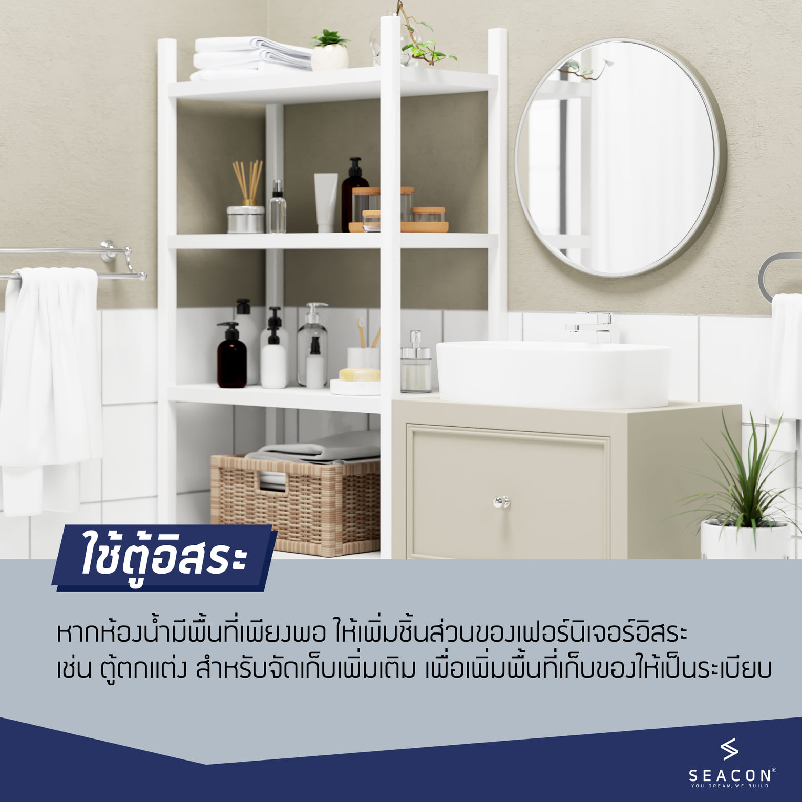 🛁🧻ห้องน้ำเป็นพื้นที่ที่มีการจราจรหนาแน่นที่สุดแห่งหนึ่งในบ้าน การใช้พื้นที่ให้เกิดประโยชน์สูงสุดคือกุญแจสำคัญ การค้นหาตู้ที่ใช่ รูปแบบชั้นวางของที่ชอบ เพื่อจัดเก็บสิ่งของจำเป็น ซึ่งนอกจะเป็นระเบียบเรียบร้อยแล้ว ยังเป็นการดีไซน์ห้องน้ำของคุณได้อย่างกลมกลืน