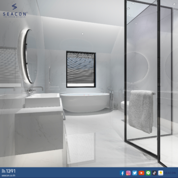 การออกแบบห้องน้ำให้เรียบง่ายเป็นสิ่งที่สำคัญในบ้านโมเดิร์นสไตล์ Minimalist โดยต้องเลือกใช้เครื่องใช้ไฟฟ้าที่มีดีไซน์เรียบง่าย