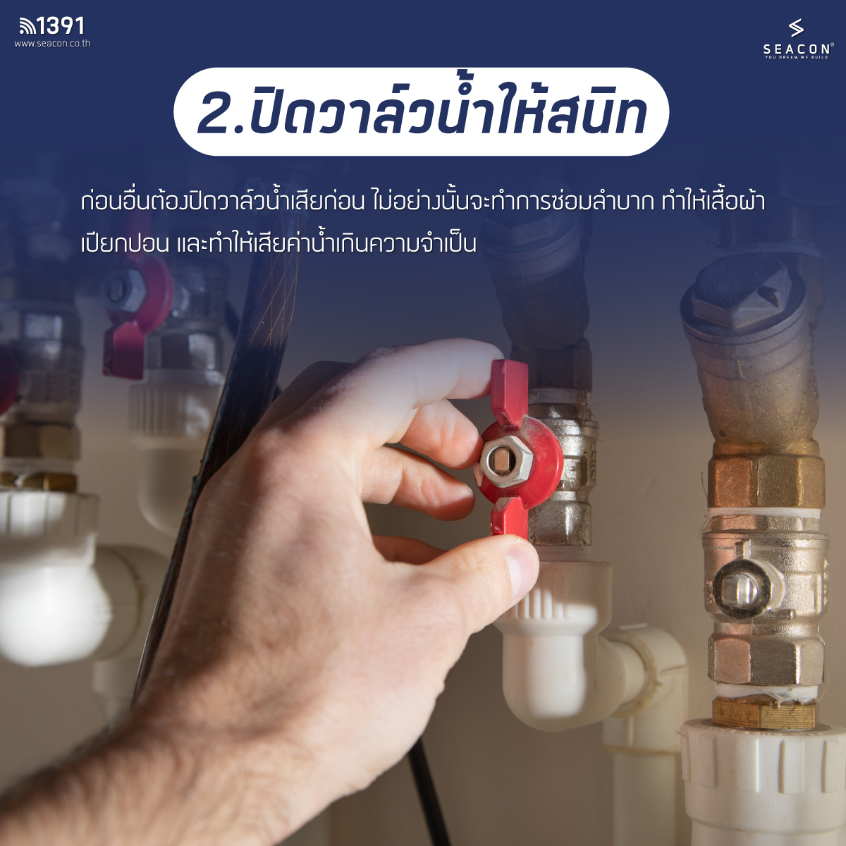 2.ปิดวาล์วน้ำให้สนิท