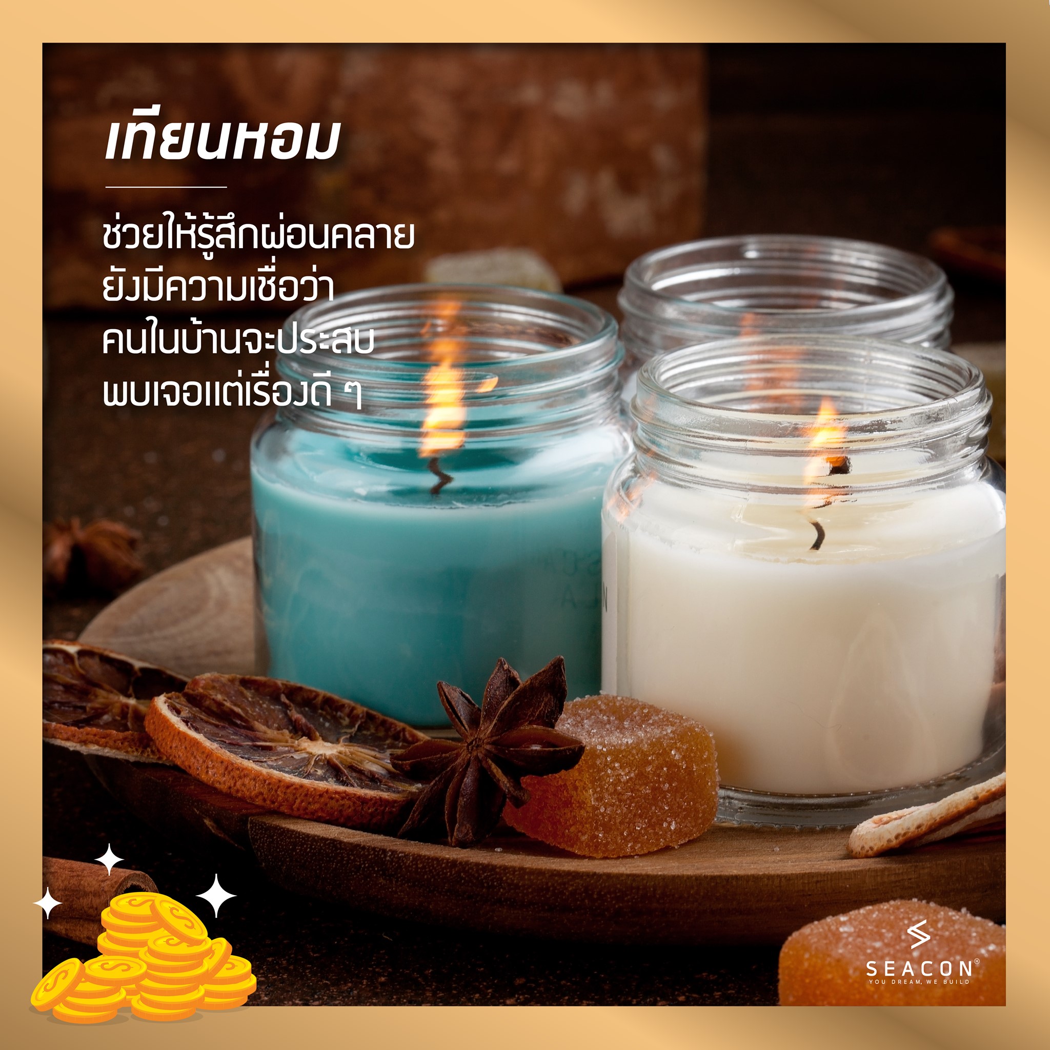 5. เทียนหอม มีหลายแบบหลายสไตล์ หาซื้อง่าย นอกจากจะสร้างบรรยากาศอันแสนโรแมนติกและผ่อนคลายแล้ว ยังมีความเชื่อว่าจะทำให้คนในครอบครัวประสบพบเจอแต่เรื่องดี ๆ