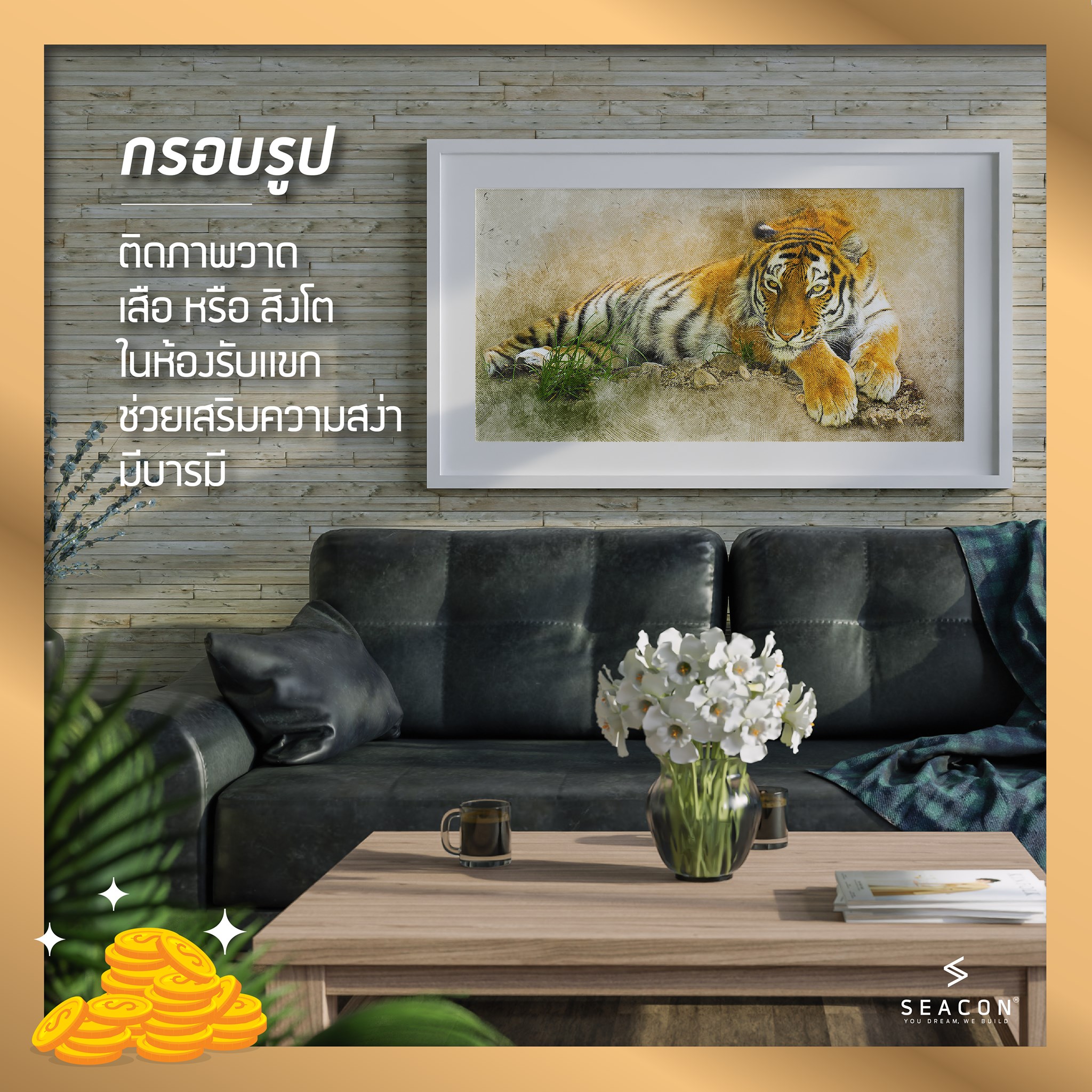 3. กรอบรูป เป็นอีกหนึ่งสัญลักษณ์ที่ช่วยให้คนในบ้านมีความสุข หากต้องการความสงบ มีสมาธิ ภาพที่เหมาะ คือ ภาพวิวทิวทัศน์ สำหรับภาพวาดเสริมบารมีที่นิยม ได้แก่ ภาพสัตว์ต่าง ๆ เช่น สิงโต เสือ ตั้งหรือติดไว้ในห้องรับแขก ช่วยเสริมความสง่ามีบารมี