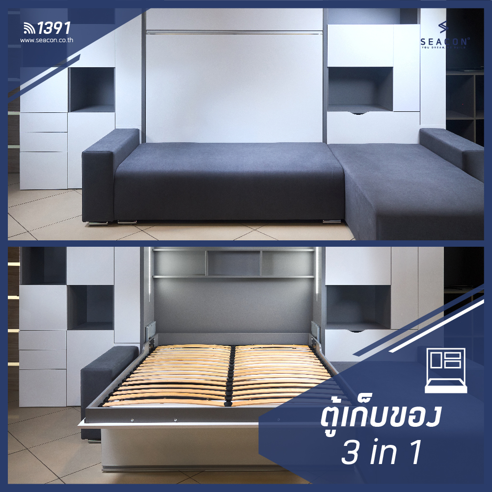 3. ตู้เก็บของ 3 in 1 สามารถเป็นได้ทั้งตู้โชว์สวย ๆ หรือสามารถกางออกเป็นเตียงนอน หรือจะพับจัดปรับเป็นโซฟา ไม่ว่าจะแบบไหนก็ใช้งานได้สะดวกสบายไม่แพ้กัน