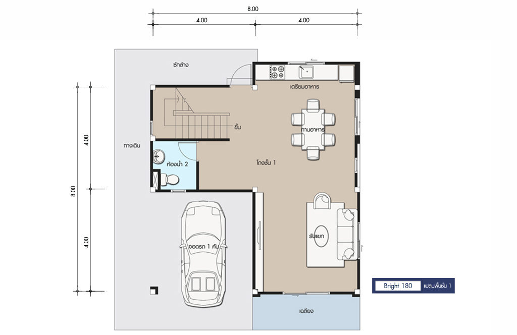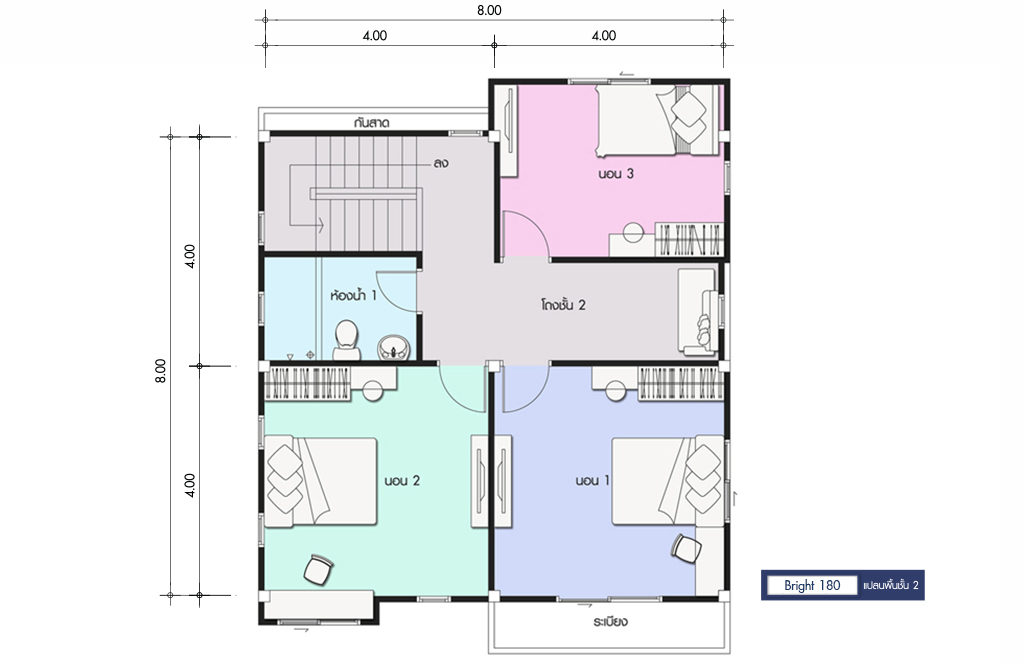 ขนาดเส้นรอบบ้าน8.00x8.00