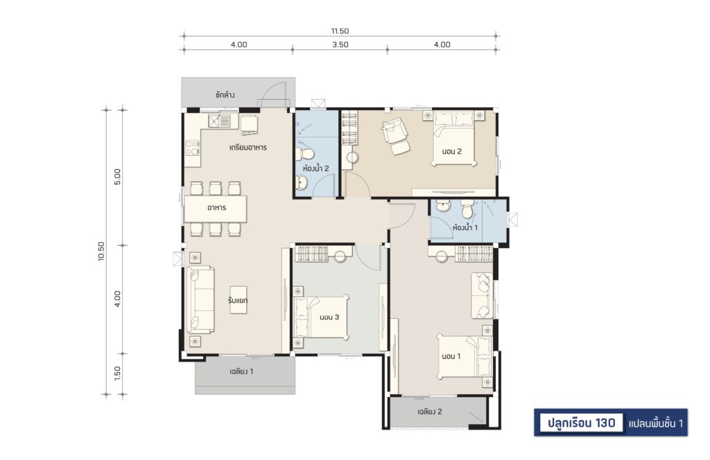 พื้นที่ : 130 ตร.ม. ขนาดที่ดิน : 64 ตร.วา