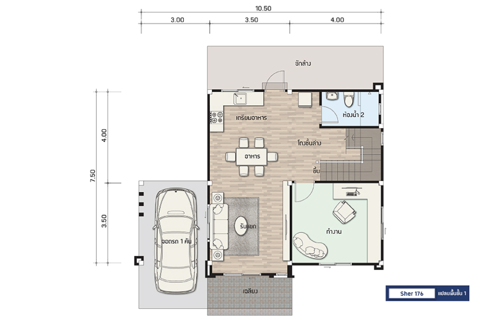 พื้นที่ : 176 ตร.ม. ขนาดที่ดิน : 47 ตร.วา