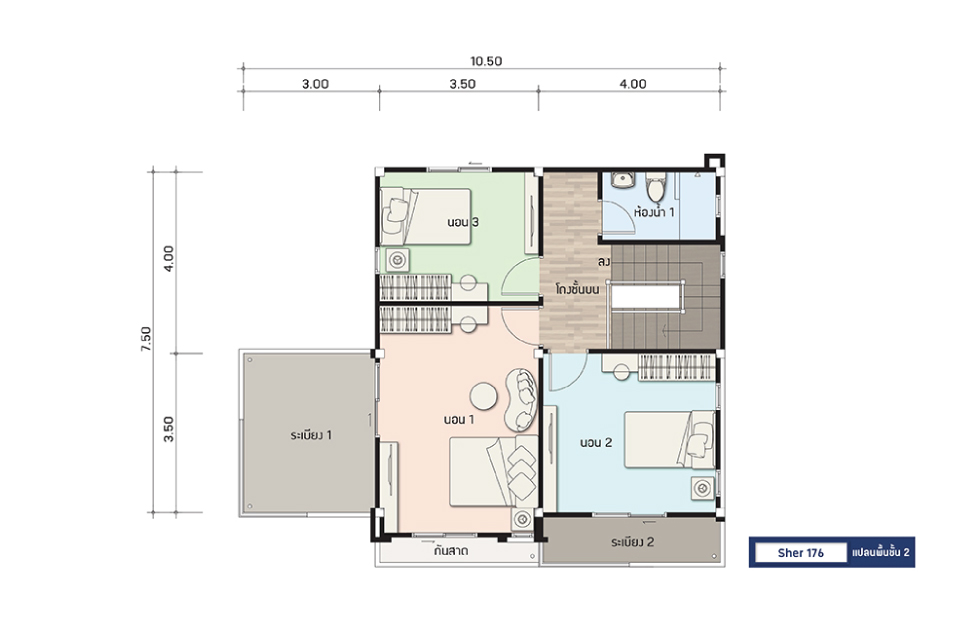 | ขนาดเส้นรอบบ้าน | 10.50x7.50 |