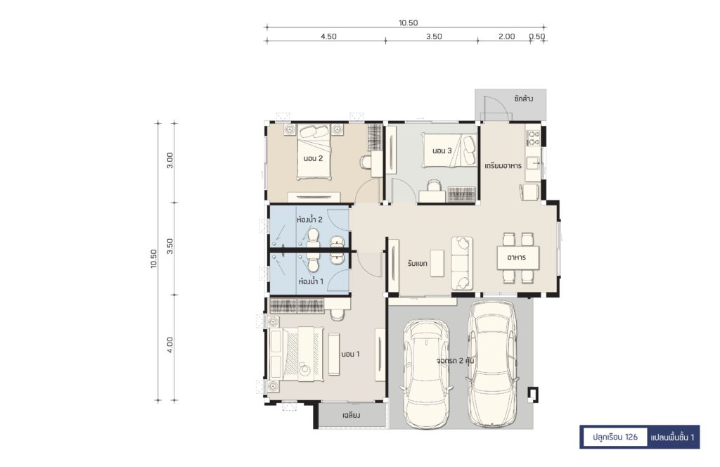 พื้นที่ : 126 ตร.ม. ขนาดที่ดิน : 60 ตร.วา