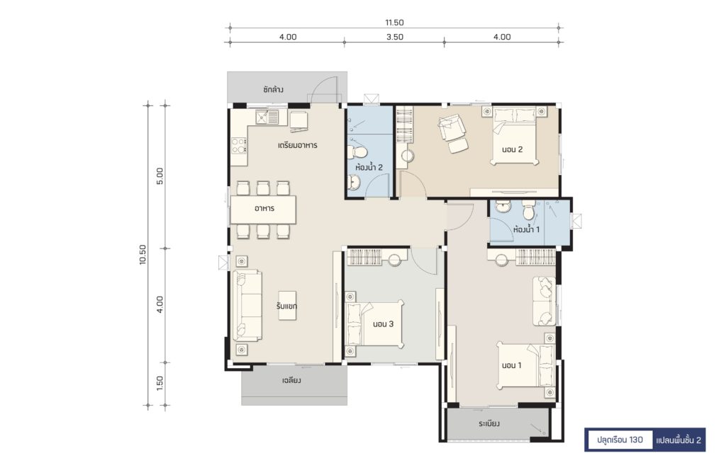 พื้นที่ : 130 ตร.ม. ขนาดที่ดิน : 64 ตร.วา