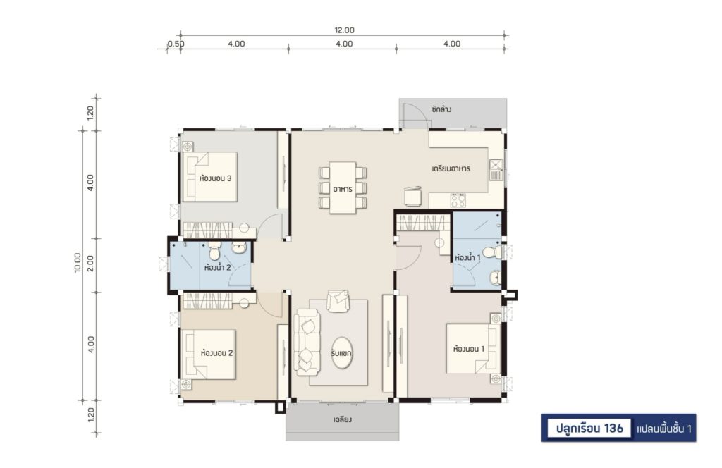 พื้นที่ : 136 ตร.ม. ขนาดที่ดิน : 65 ตร.วา