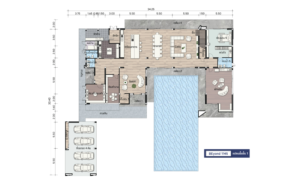 พื้นที่ : 1,145 ตร.ม. ขนาดที่ดิน : 350 ตร.วา