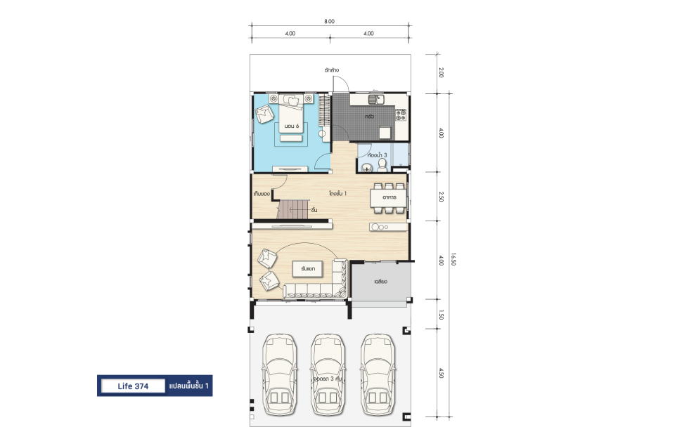 พื้นที่ : 374 ตร.ม. ขนาดที่ดิน : 80 ตร.วา