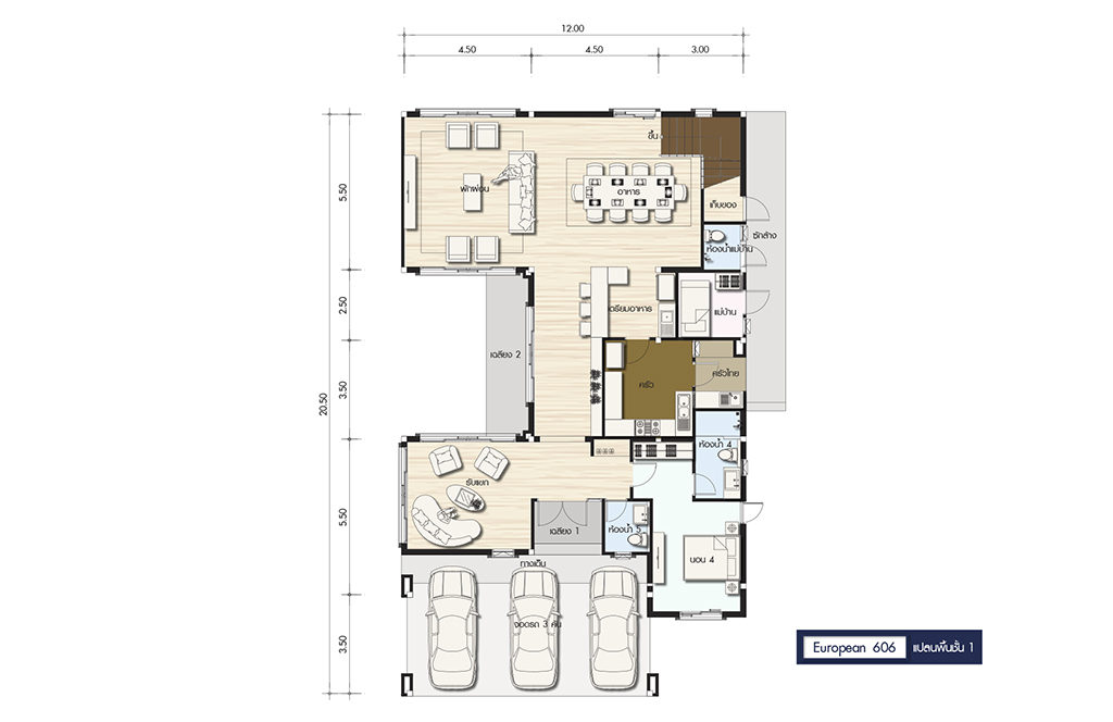 พื้นที่ : 606 ตร.ม. ขนาดที่ดิน : 122 ตร.วา