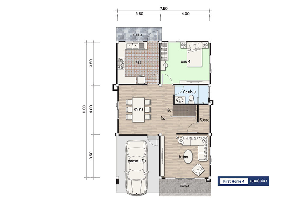 4 ห้องนอน 3 ห้องน้ำ 1 ที่จอดรถ