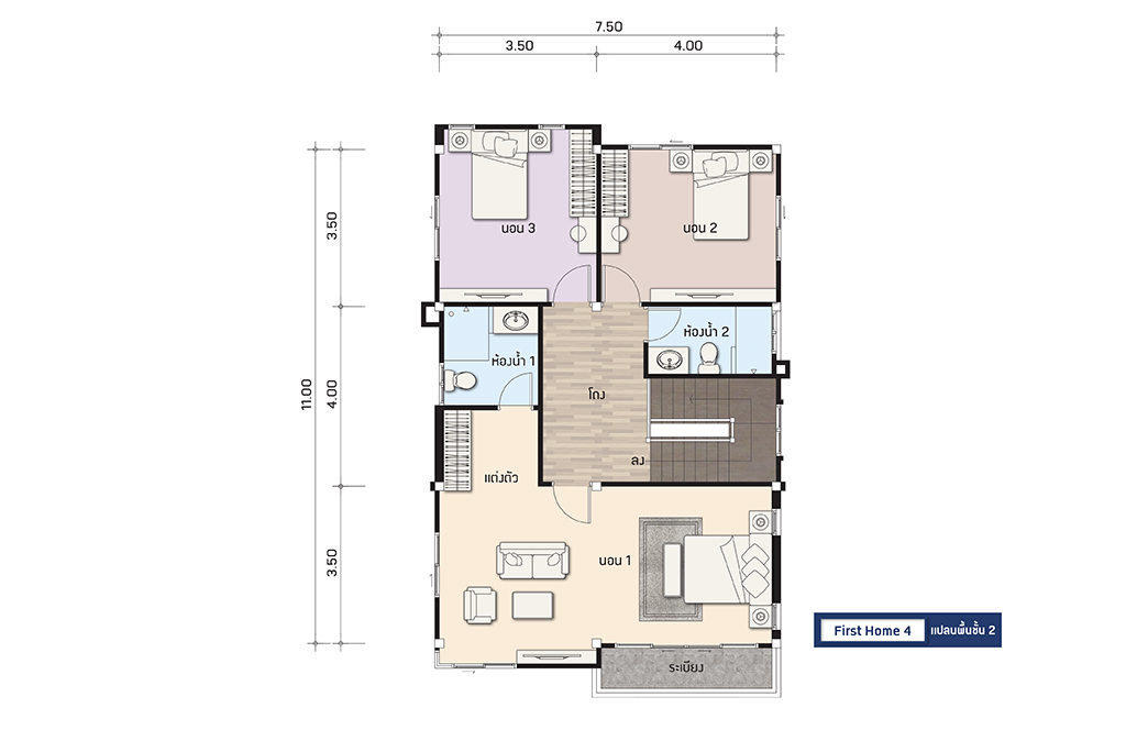 ขนาดเส้นรอบบ้าน7.50x11.25