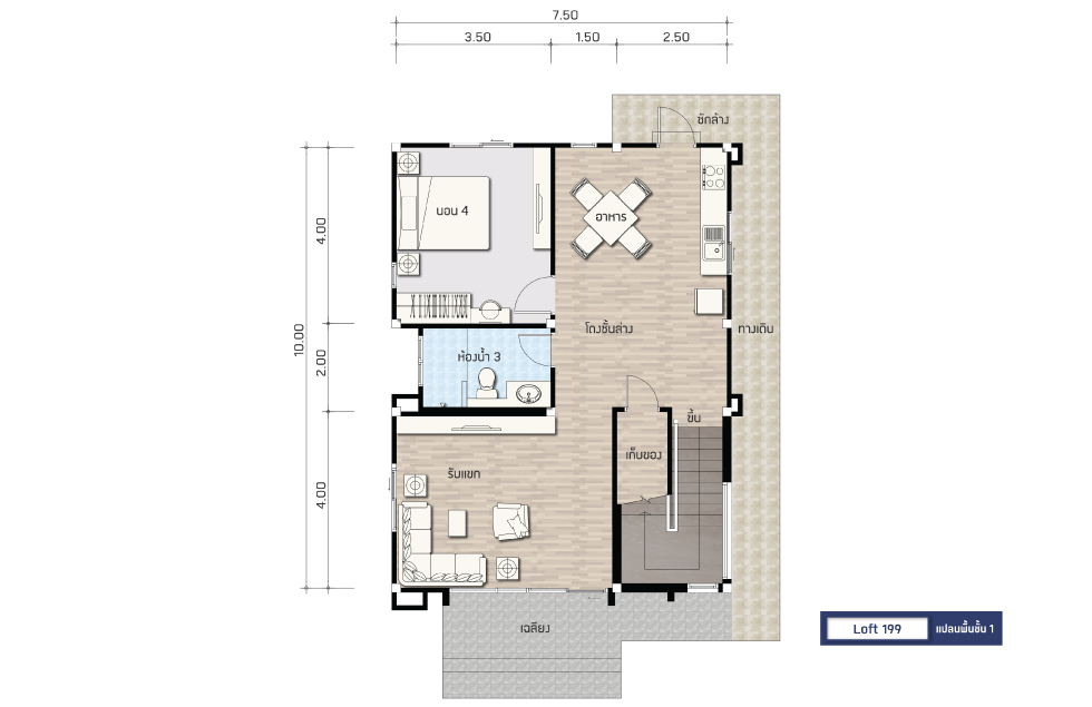 | ขนาดเส้นรอบบ้าน | 7.50x10.00 |