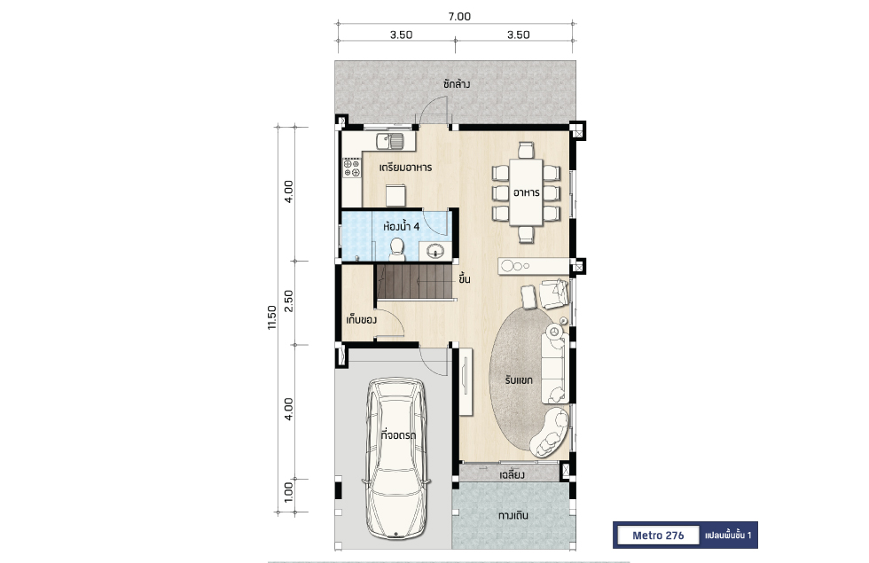พื้นที่ : 276 ตร.ม. ขนาดที่ดิน : 60 ตร.วา