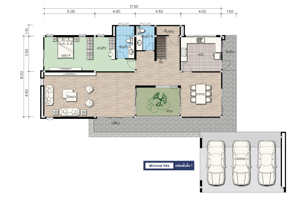 พื้นที่ : 456 ตร.ม. ขนาดที่ดิน : 143 ตร.วา