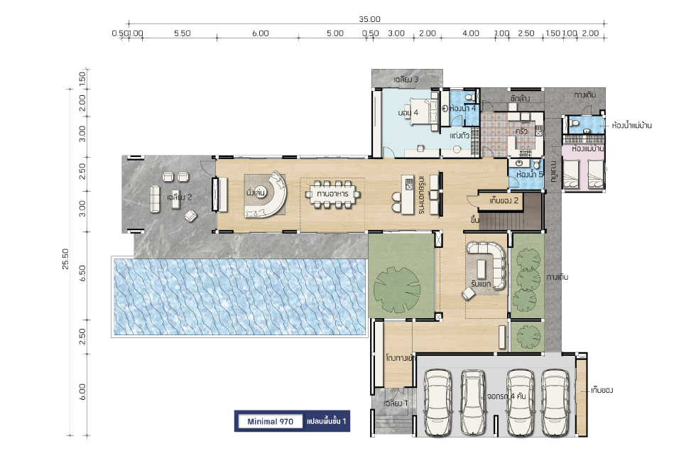 พื้นที่ : 970 ตร.ม. ขนาดที่ดิน : 315 ตร.วา