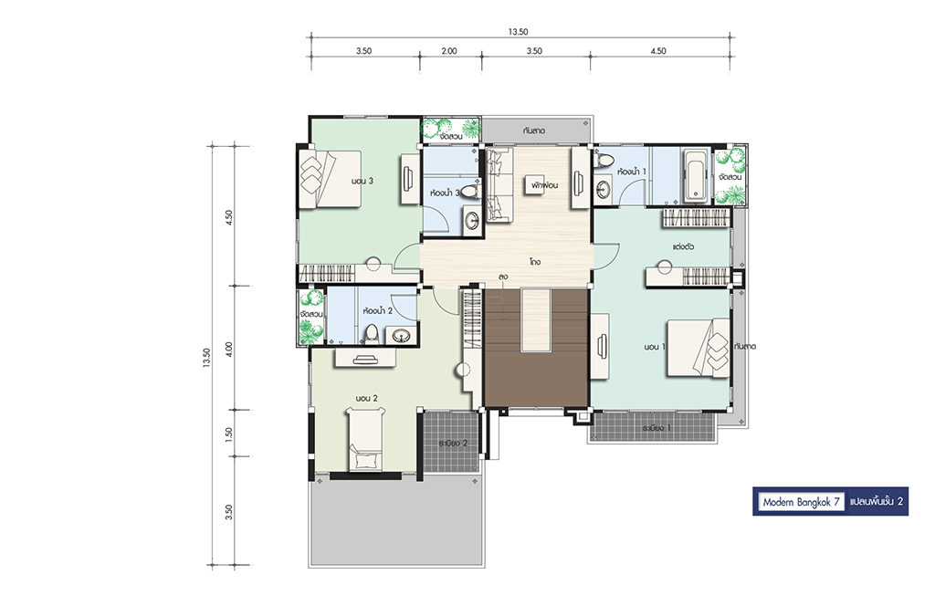 | ขนาดเส้นรอบบ้าน | 13.50x13.00 |