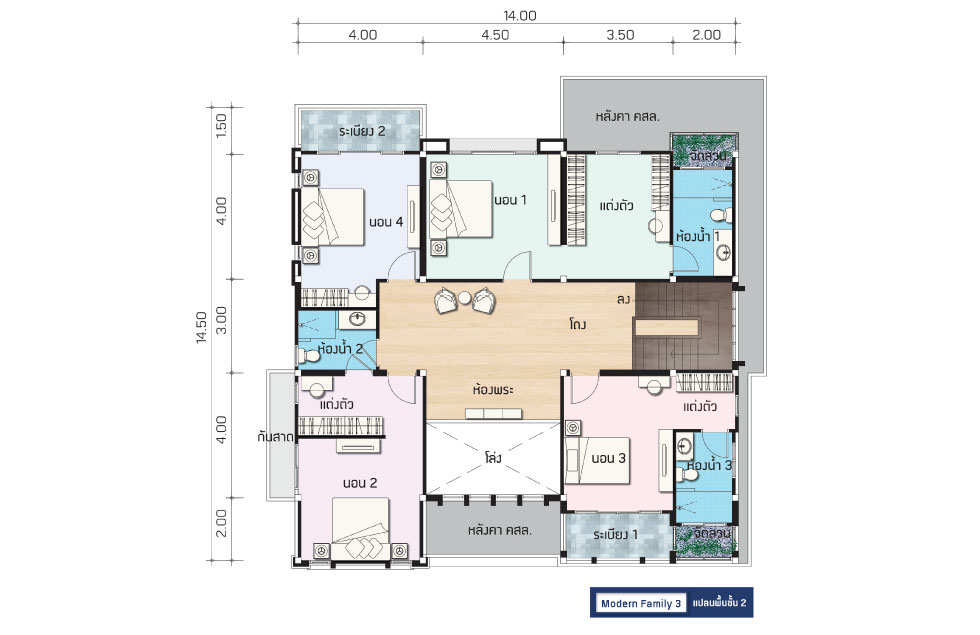 | ขนาดเส้นรอบบ้าน | 14.60x14.70 |